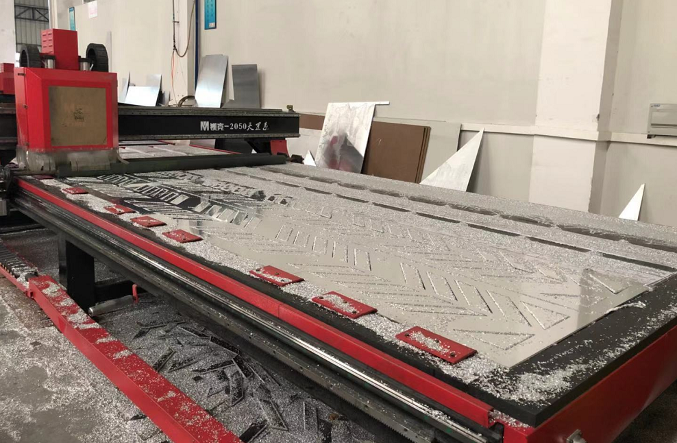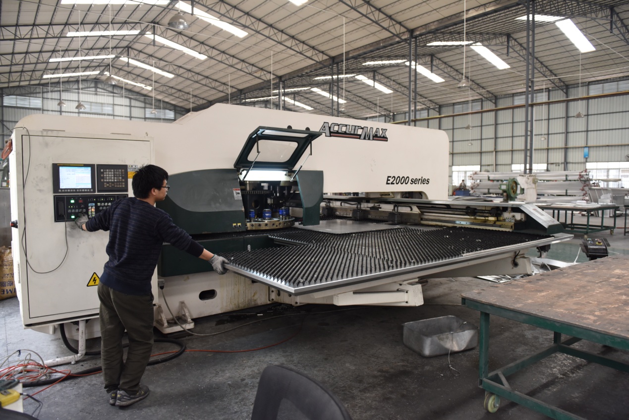 Raw aluminum plate → Cutting Aluminum plate based on drawings → Perforated by CNC machine or Laser Cutting → Bending Aluminum plate → Welding → Polishing Aluminum plate surface → Powder coating or Spray Painting