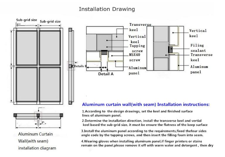 When aluminium-plastic panel is under edge fold construction, it shall be grooving at edge fold section and it may open V-groove and U-groove, etc. according to edge fold requirement, several typical grooving ways see figure C.l. It shall make use of Special grooving machinery for aluminium-plastic panel to ensure grooving depth is not damage the opposite aluminium material and it shall be left with 0.3 mm thick plastic layer. It may adopt reinforcing measures as bordered rib, etc. as it is required at grooving section. Unit is mm 4) Lacquer Cleaning Information:
