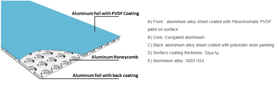 1, Aluminum panel material: Alloy 1100, 3003, 3105, 5005, etc