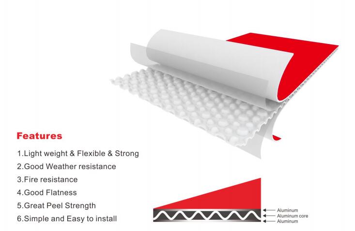 ACEBOND Aluminum core composite panel consists of an embossed aluminum core ( manufactured from different thickness Aluminum sheet ), bonded between two Aluminum sheets . It is an ASP which is light-weight but very stiff and strong .It is A2 Fireproof Panel .
